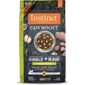 Ingredientes: Harina de pollo, harina de arroz, cebada, fibra de guisante, grasa de ave (conservada con tocoferoles mixtos), arándanos, linaza, sabores naturales, levadura de cerveza seca, ácido cítrico (un conservante), vinagre, sal, lecitina de girasol, extracto de romero.